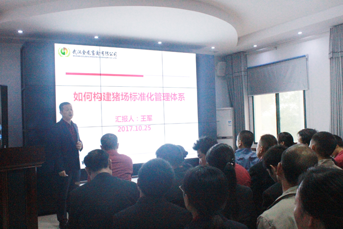 在緊張的考試結(jié)束后,由總經(jīng)理王軍進(jìn)行了主題為《如何構(gòu)建豬場(chǎng)標(biāo)準(zhǔn)化管理體系》的培訓(xùn),從豬場(chǎng)環(huán)境、生物安全、技能操作、人員思想等多方面,以實(shí)際案例的形式,立體的介紹了豬場(chǎng)標(biāo)準(zhǔn)化的建立和作用。同時(shí)也就信息化在指導(dǎo)生產(chǎn)、提升自我素質(zhì)方面的重要性。